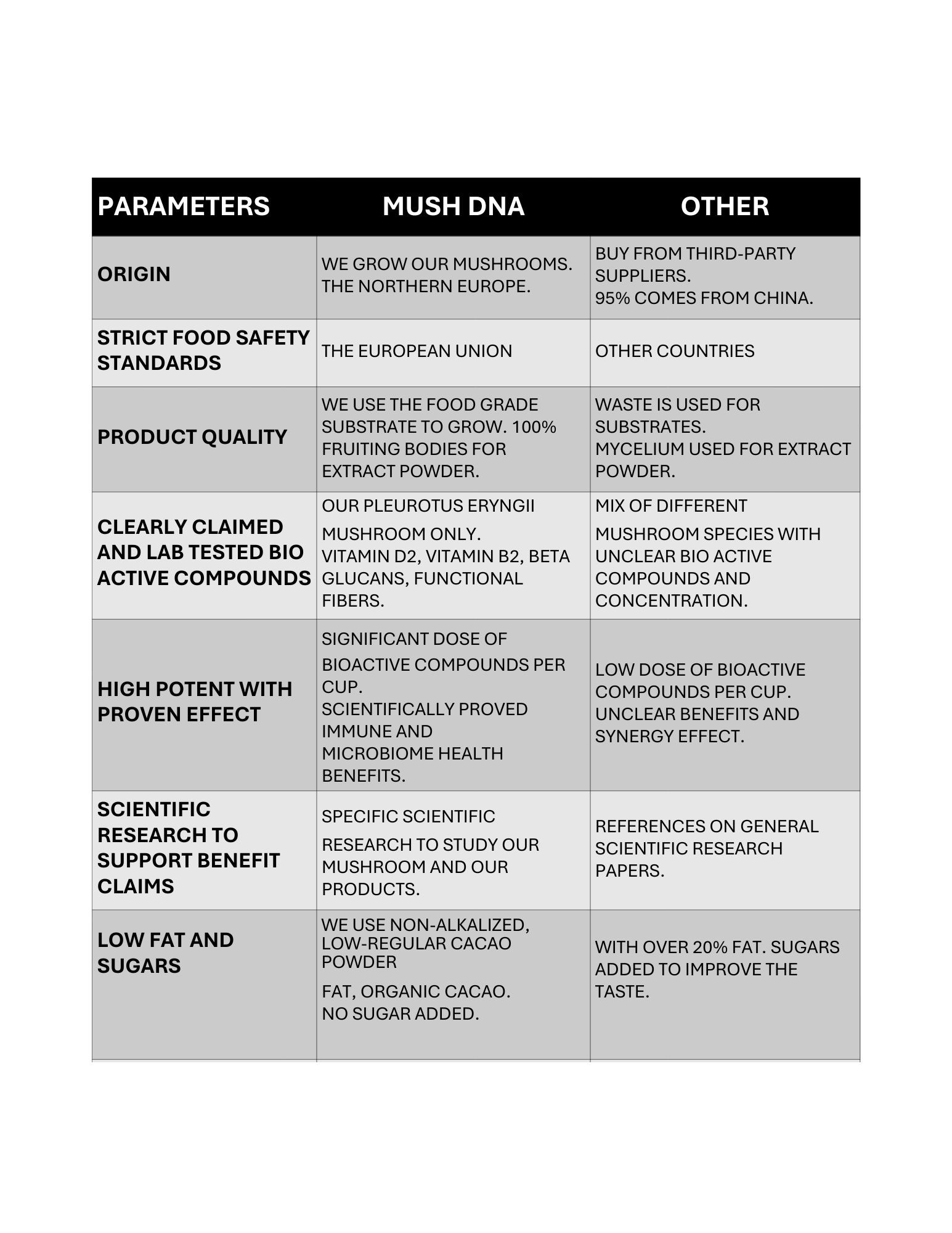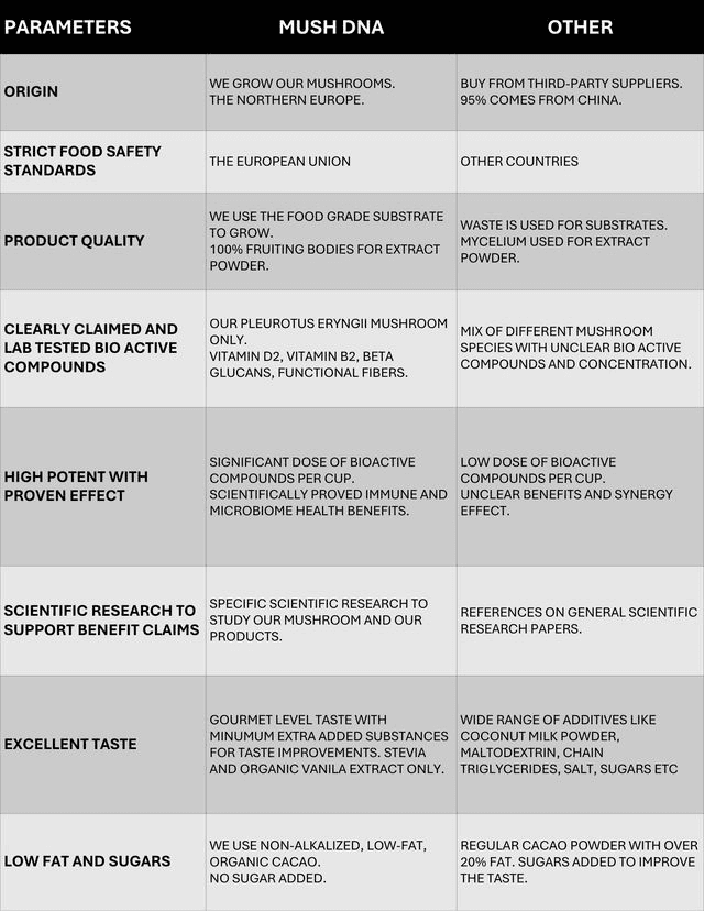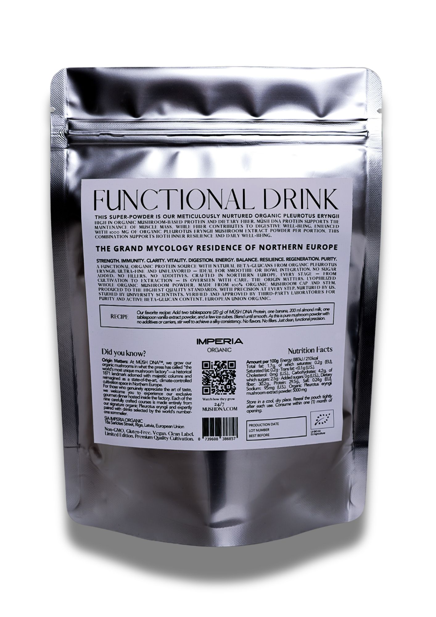 MÙSH DNA is meticulously crafted for individuals seeking the pinnacle of functional nutrition. Cultivated in a cutting-edge facility in Northern Europe, each batch is nurtured with precision to preserve the full spectrum of bioactive compounds, including beta-glucans and polysaccharides. These essential components support gut health, bolster immune resilience, and enhance overall vitality.